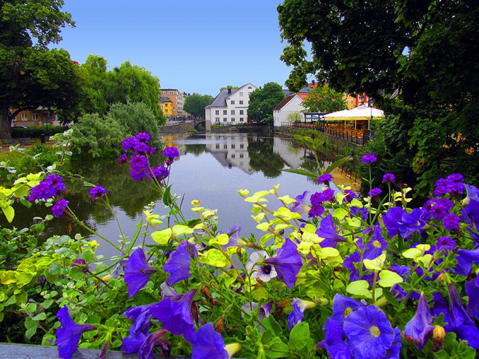 I denne gamle hovedstaden bor det nå 185.000 innbyggere og 40.000 av dem er studenter ved Nordens nest eldste universitet. Den indre byen er enkel å finne veien i, men som i de fleste andre storbyer er det vanskelig å finne en parkeringsplass midt på dagen. Vi parkerer derfor i utkanten av byen og tar en buss inn til sentrum, der det første man ser er det store slottet med murer og festningsvoller og domkirkens tvillingtårn.Der finnes massevis av smale maleriske gater og Fyriseleven snor seg gjennom byen, som saktens kan måle seg med andre gamle europeiske byer.På vår tur gjennom byen ser vi flere ukjente skilt i trafikken, der fotgjengerskiltet har fått et annet utseende og undertavlen henviser til en rekke barnebøker om katten Pelle Svansløs, fordi forfatteren Gösta Knutsson bodde i byen.