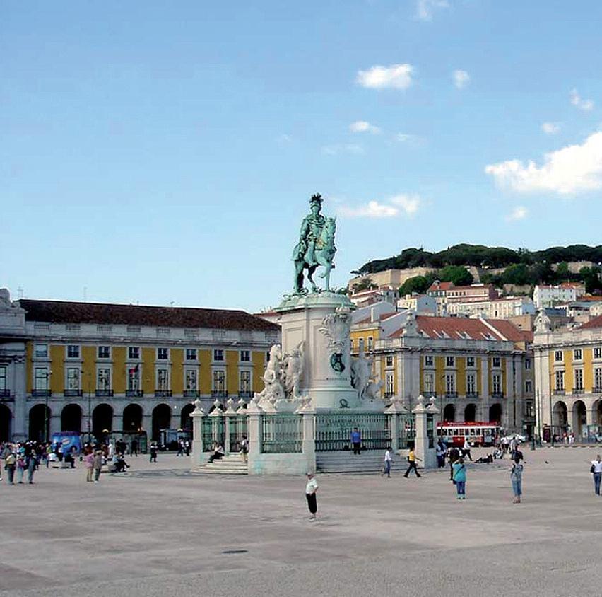 ...er en av de flotteste åpne plassene i Europa.Bygningene rundt plassen har tidligere huset kongelig, biblioteker og regjeringskontorer.Midt på plassen står statuen av Kong Jose I. På Praco do Commercio ligger også Lisboas eldste kafé, Martinho da Arcada.
