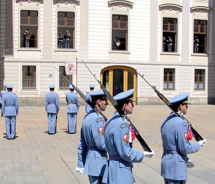 Det er vaktavløsning på slottet ved hovedinngangen kl. 12 hver dag. Vær ute i god tid - det er alltid stor oppslutning.Bak slottet finnes et lite område med små, maleriske håndverkshus fra det 16. århundre, blant annet Kafka-huset. Det er bare adgang til stedet for turister, som har en spesiell billett eller A-billett.