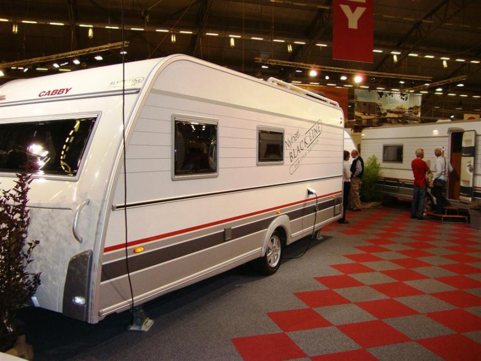 Black Line tilbyr en innredning ut over det vanlige. I vognen er det blant annet et spisebord i sort laminat. Sort skinn er benyttet som trekk i sofagruppen, som til overmål er utstyrt med et par nakkeputer. Lukene i overskapene og vitrineskapet er i mørkt tonet glass, og sofagruppens stilrene trekk hever interiøret opp i en høyere dimensjon. Kjøkkenet framstår også elegant med sort laminat på benkeplaten og krydderhyllen.Fronten på kjøleskapet er i børstet aluminium. Soveavdelingen har en deilig dobbeltseng med fjærmadrass og stillbar hodeende, og ved siden av soveværelset er det et flott innredet badeværelse med behagelig belysning. Utvendig har man valgt å beholde den klassiske Cabby looken.
