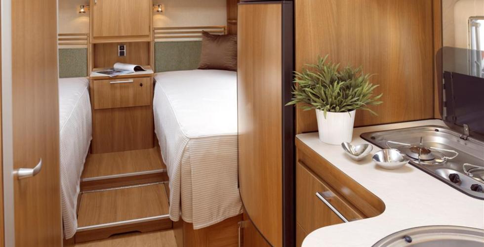 Modellen er unik blant bobiler, og med en lengde på hele 8,8 m er det en bobil, som er litt ut over det vanlige. Som modellbetegnelsen Travel Master 880 LT angir, har denne modellen samme planløsning bak som Travel Master 750 T – enkle senger og et baderom, som strekker seg på tvers over hele bakdelen. I tillegg er det i 880 LT blitt plass til et deilig romslig vinkelkjøkken og overfor dette et stort garderobeskap. Den større grunnflaten har også gitt plass til en sofa til høyre for døren, noe som betyr, at 6 personer nå kan sitte bekvemt i sittegruppen i fronten.