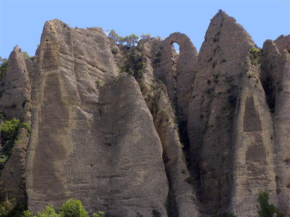 Akkurat her vil vi anbefale en avstikker til en naturseverdighet, som er oversett i stort sett alle turistbrosjyrer. Ta vei D 4096 gjennom St.Auban og Montfort og kjør over elven etter at du har passert motorveiviadukten. I veikrysset i landsbyen Les-Meés svinger du til venstre langs D4. Rett etter landsbyen kan du nå på høyre side se en besynderlig rekke med klipper, som ligner en rekke overdimensjonerte elefantføtter. Stedet, eller rettere sagt klippene heter Rochers-des-Mees. Det er en rekke basaltklipper, etterlatenskaper etter en vulkansk sprekk i jorden for mer enn 150.000 år siden.