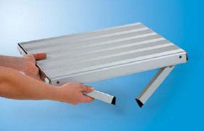 Det er produsert av Fiamma og har betegnelsen Alu Step Pro.Det er laget av eloksert aluminium.Beina kan enkelt slås inn slik at det tar liten plass under transport og når de er utslått er de svært stabile.