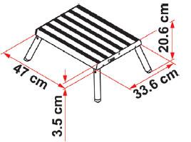 Trappetrinnet har en sklisikker overside og lav vekt, bare 3 kg, med en maksimal belastning på hele 200 kg. Dimensjonen sammenslått er 470x335x35 med mer, mens det oppslått måler 470x335x206 mm.