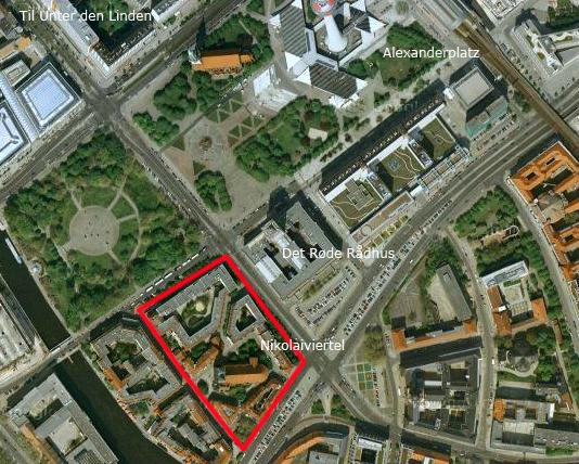 Bare et steinkast fra Alexanderplatz og ikke langt fra den store langsgående aksen Unter den Linden og Karl-Liebknechtstrasse ved domkirken ligger et område, som er ukjent for de fleste turister. Selv artikkelens forfatter brukte mange år på å oppdage Berlins eldste område, presset inn mellom Spree og ”Alex” . Det måtte utallige besøk i byen til før denne perlen ble oppdaget.