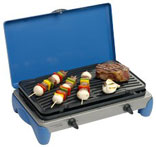 Karet fylles opp med vann noe som gjør at ubehagelig drypp fra grillingen samles opp og gjør renholdet enkelt. Teflonbehandlet rist og kar. Barnesikre brytere som krever at man trykker og vrir bryterne for å starte kjøkkenet. Det beskyttende sprutvernet fungerer som lokk.Effekt pr. brenner: 1700W+2300WGassforbruk: Maks 122 g/h+170g/hVekt: 5,9kg