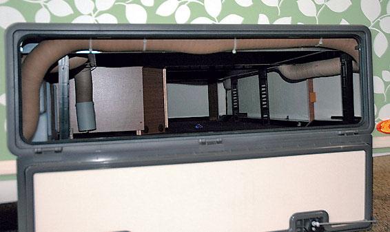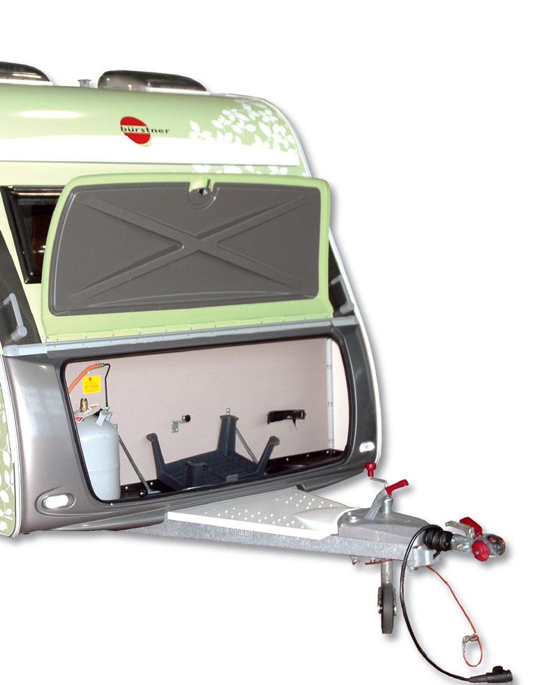 Lagerplass er ikke det som ble høyest prioritert da denne vogna ble tegnet. For så vidt greit nok. Den er ikke beregnet på mer enn to. En spesiell løsning i vogna er skaprekka som er plassert mellom kjøleskapet og bakveggen i vogna. Normalt er det de en fortsettelse av sittegruppa. Ikke i denne vogna. Konstruktøren har valg å sette i ei rekke med underskap. Jeg tror at dette er en løsning som vil bli godt tatt i mot. Et bord som kan skyves på ei skinne gir god tilgang til denne skaprekka. Hengeskapet er plassert mellom badet og sittegruppa. Høyden er på 118 centimeter, dybden er 46 og bredden 51 centimeter. Hengehøyden er 107 centimeter. Under hengeskapet er det plassert et lite skap. Dette er 36 centimeter dypt, 51 bredt og har en høyde på 36 centimeter. Under sittegruppa er det bra med stableplass. Mye av denne plassen kan nåes via ei utvendig lasteluke. Et barskap med ei gjennomsiktig dør er plassert over kjøleskapet. Dette skapet er delt i tre med to hyller. I taket over skapet er det to spotter som lyser opp skapet. Inne i skapet er det en spot. Vogna har integrert gasskasse. Etter at det obligatoriske utstyret er på plass, så er det likevel noe plass igjen.
