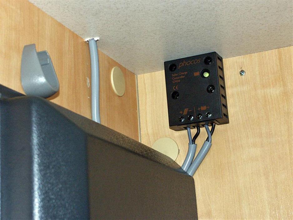 Ladningsregulatoren skal helst plasseres inntil batteriet, ettersom den da gir en temperaturkompensasjon av ladningen. Men i nødsfall kan den plasseres på et annet sted. Koble kabelen til solcellepanelet i regulatoren først, og dra den andre kabelen til det stedet der du skal koble den til 12 V-systemet.