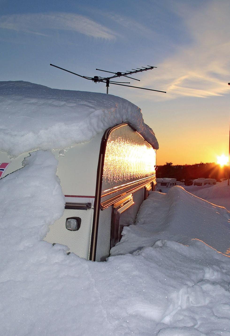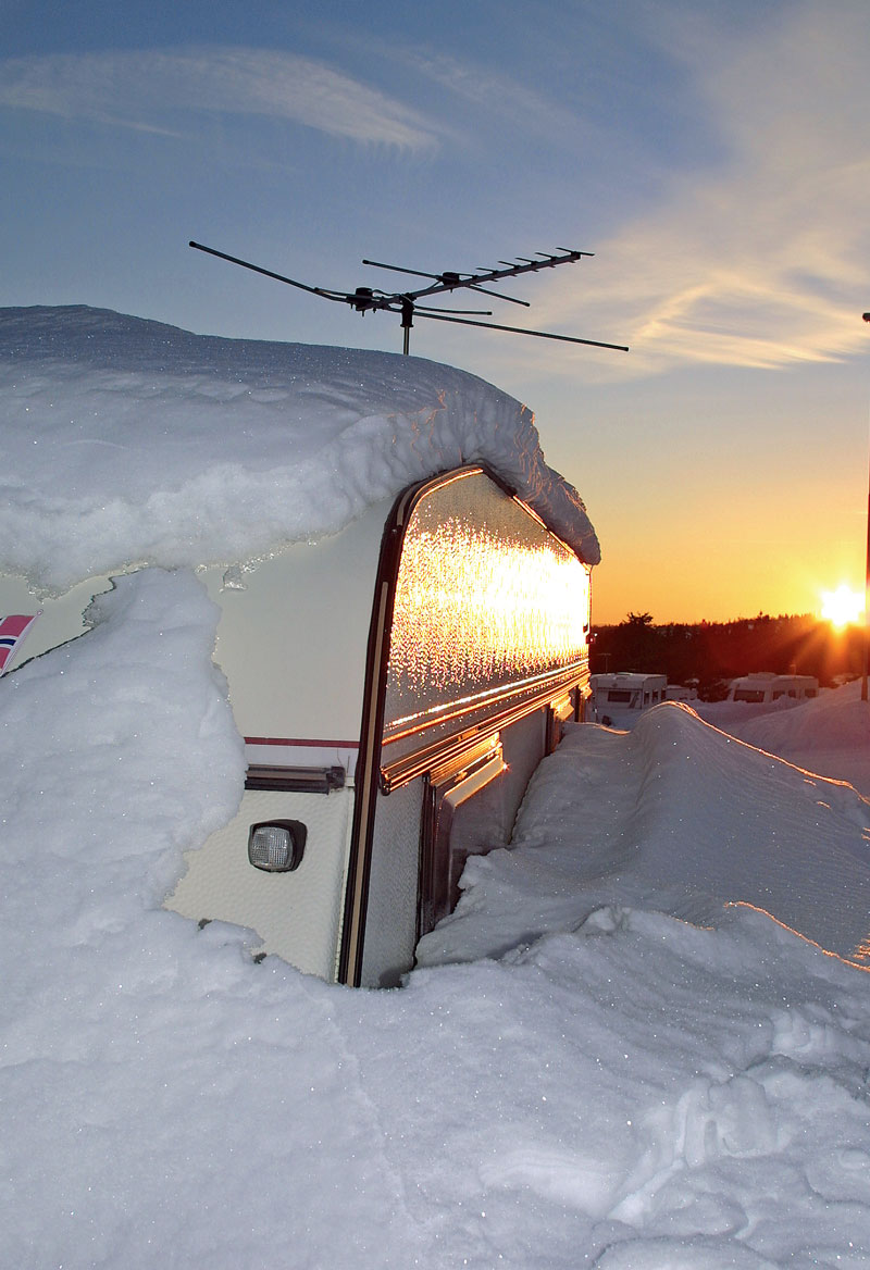 –Vann er hovedfienden. Når det blir kuldegrader ekspanderer vannet og sprenger beholdere. Så blir det varmere i været, vannet smelter og det oppstår vannskader. Dette kan unngås ved å fjerne alt vann somkan fryse. Gå grundig til verks. Ferskvannstank, dokassetten og vannpumpa er ikke nok. Samtlige kraner og ventiler åpnes og må stå oppe hele vinteren, fastslår Solberg. I tillegg må fyrkjelen i sentralvarmeanlegget tømmes. Videre må det foretas ensjekk av hvor mange minusgrader vannet i sentralvarmeanlegget tåler. Fyll på mer frostvæske dersom det er for lite.– Det er også viktig å sørge for å fjerne kondens som oppstår inne i vogna vinterstid. Sett inn luftavfuktere. Det finnes flere typer på markedet som er brukbare. Disse bør tømmes med jevne mellomrom, sier mekanikeren. Mange er redd formuseangrep i vogna. Ei mus kan gnage i stykker putene i løpet av svært kort tid.– I utgangspunktet er ei campingvogn musetett, så det skal ikke være noen fare for det. Det jeg ville ha gjort, dersom jeg var usikker, er å sette opp et kobbel med tradisjonelle musefeller og kontrollert disse hyppig tidlig i kuldeperioden,mener Solberg.Å dekke vogna med en vanlig pressenning er ikke noe Solberg har sansen for. Heller ikke det å måke snø av taket i tide og utide.– En tett pressenning kan gjøre større skade enn nytte. Kondens vil danne seg under pressenningen og kan, i verste fall, renne ned på plastene i vogna og lage skjolder og striper. Disse kan det være vanskelig å fjerne. Snømåking er, etter min mening, kun nødvendig ved store snømengder og vått vær, som gjør snøen svært tung.Vær forsiktig så du ikke skader takplater, råder Hans. Et annet råd han gir er å smøre alle låser og å sette inn alle dørlister med silikon. Dette for å hindre fastfrysning.– Dersom du ikke har mulighet for å lade batteriet jevnlig, så ta det ut og oppbevar det frostfritt. Et utladet batteri fryser allerede ved femkuldegrader, fastslår han. Ved skade som oppstår på grunn av frost vil ikke fabrikanten garanti gjelde.– Sjekk og følg instruksjonsboka nøye. Ta kontakt med leverandøren for å få utfyllende informasjon. Han kan gi deg alle detaljer du trenger for din spesielle modell, avslutter Solberg.