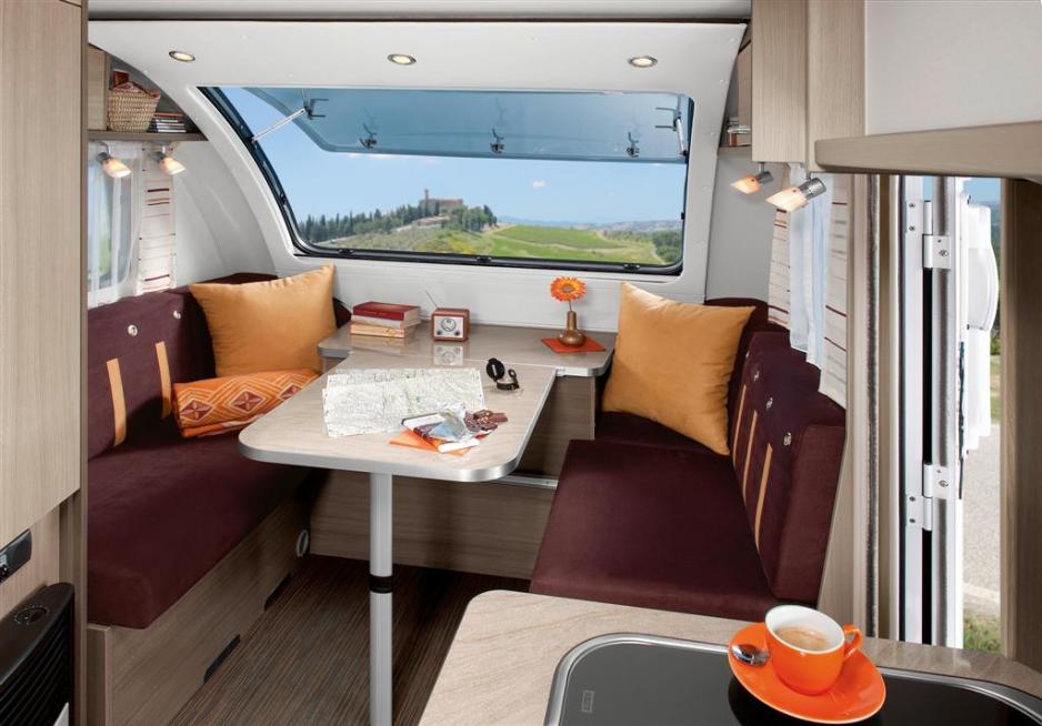 Tourist HD tilbys i to utvendige farger: standard i hvitt og som tilvalg i cacao grey. Campingvognen er virkelig elegant med sine tonede vinduer, et stort frontvindu og sin aerodynamiske form, som minner om Aero Style. Også innvendig satser Dethleffs på en tiltalende design.Tourist tilbys i to tofargede tredekorer, nemlig i den lyse sand/alme-dekor eller i den litt mørkere calva/eple-dekor. Velg mellom to bomiljøer i bourgogne eller beigebrun, som passer perfekt til vognen.Tourist HD tilbys i første omgang som en modell 460 V, som har en fantastisk planløsning, der det er masser av plass. I fronten er det en dobbelt dinette. På grunn av det store panoramavinduet, som hvelver seg over sittegruppen, føles det som om, man sitter på en veranda. Rett ved siden av inngangsdøren med runde kanter, ligger kjøkkenet. Med de standardmessige to kokebluss, en ferskvannsdunk og et 60 liters kjøleskap med fryseboks er her alt, det man trenger til en campingferie. Som ekstrautstyr kan det tilvelges et 3. kokebluss, et større kjøleskap og sågar en mikrobølgeovn.