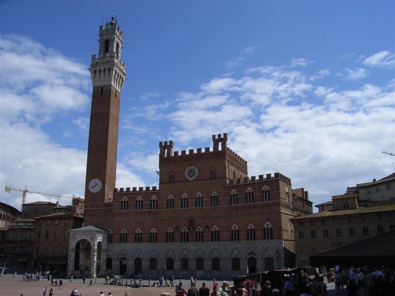 Siena ligger på tre bakker, så det er ganske imponerende, hvordan man har kunnet bygge disse vakre bygningene i det kuperte terrenget. Sienas rådhus på Pizza del Campo ga i sin tid arkitekt Martin Nyrop inspirasjon til rådhuset i København. Det framgår tydelig. Rådhusplassen er absolutt Sienas pulserende hjerte. Her trives lokale og turister på beste måte. Enten slentrer de rundt eller nyter atmosfæren fra en av de mange fortausrestaurantene. Fonte Gaia, som også ligger på rådhusplassen, er utover å være utrolig vakker også der man får sine ønsker oppfylt. Ta sjansen – kanskje er det riktig? Hunnulven, som ammer tvillingbrødrene Romulus og Remus, ses overalt. Det er en av Sienas mange legender. Det var Romulus, som etter sigende grunnla Roma i det 8. århundre f. Kr.