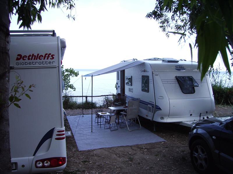 Allerede ved ankomsten til Vesuv og storbyen Napoli får vi en fin fornemmelse av, hvordan denne aktive vulkanen virkelig ligger i Napolis ”bakgård”. Vi utsetter imidlertid vulkanen til litt senere for først å finne campingplassen og få koblet av campingvognen vår. Det er nemlig ikke så god plass i syditalienske byer, så det er ikke stedet der man kjører rundt med vogn på kroken.En snau times kjøring fra Napoli, langs den imponerende klippekysten, over et par fjellpass og gjennom små tett trafikerte byer, ankommer vi til en av de minste campingplassene jeg noensinne har vært på. Vi kommer til å ligge i første rad med utsikt til Middelhavet – langt borte fra både trafikk og storby.
