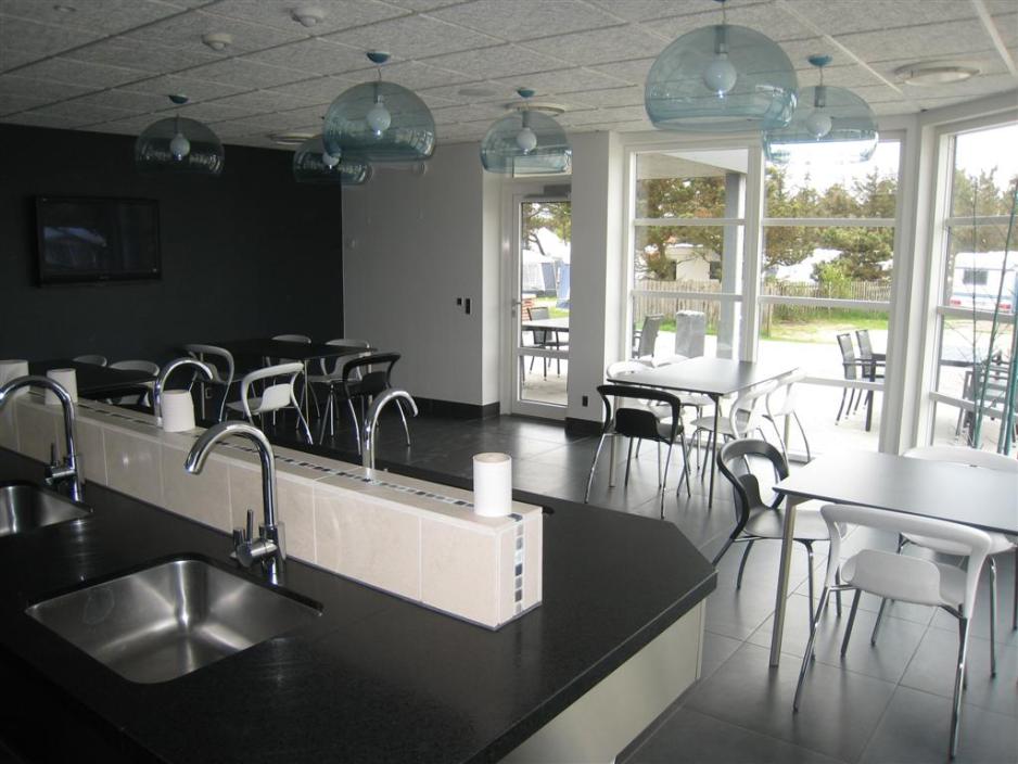 Hvis du foretrekker en campingplass med topp moderne fasiliteter uten at det påvirker overnattingsprisen, så er Henne Strand Camping absolutt verdt et besøk. Kjøkken, bad, familierommene er topp moderne og spesielt barnas baderom er en fulltreffer. Det er faktisk en lek å dusje og vaske sommerdagens skitt og møkk bort. Familiebaderommene er store og funksjonelle, så selv en stor familie kan dusje sammen. Infoskjermene rundt omkring på plassen informerer kontinuerlig om aktiviteter, været og gode tilbud. Man kan også melde seg på en SMS service og holde seg orientert på den måten.