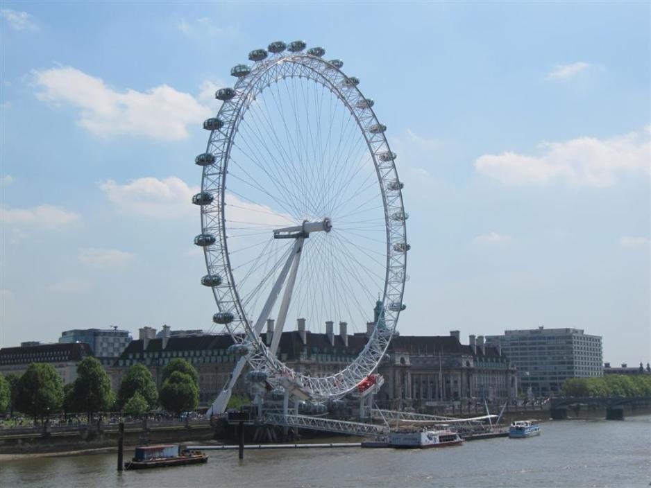 2100 tonn veier det kjempemessige og moderne pariserhjulet og man skal bøye hodet langt tilbake for å se toppen, når man står på plassen under det. Det ligner mest av alt et sykkelhjul som er satt på høykant. Det er 32 store kapsler, som transporterer passasjerene rundt. Hjulet beveger seg hele tiden, men veldig langsomt. En tur tar en snau time. Man skal imidlertid beregne god tid til å komme opp, da det ofte er veldig lange køer. Til travle turister kan det kjøpes såkalte ”fast track” billetter, der man hopper over køen til en betydelig høyere pris.