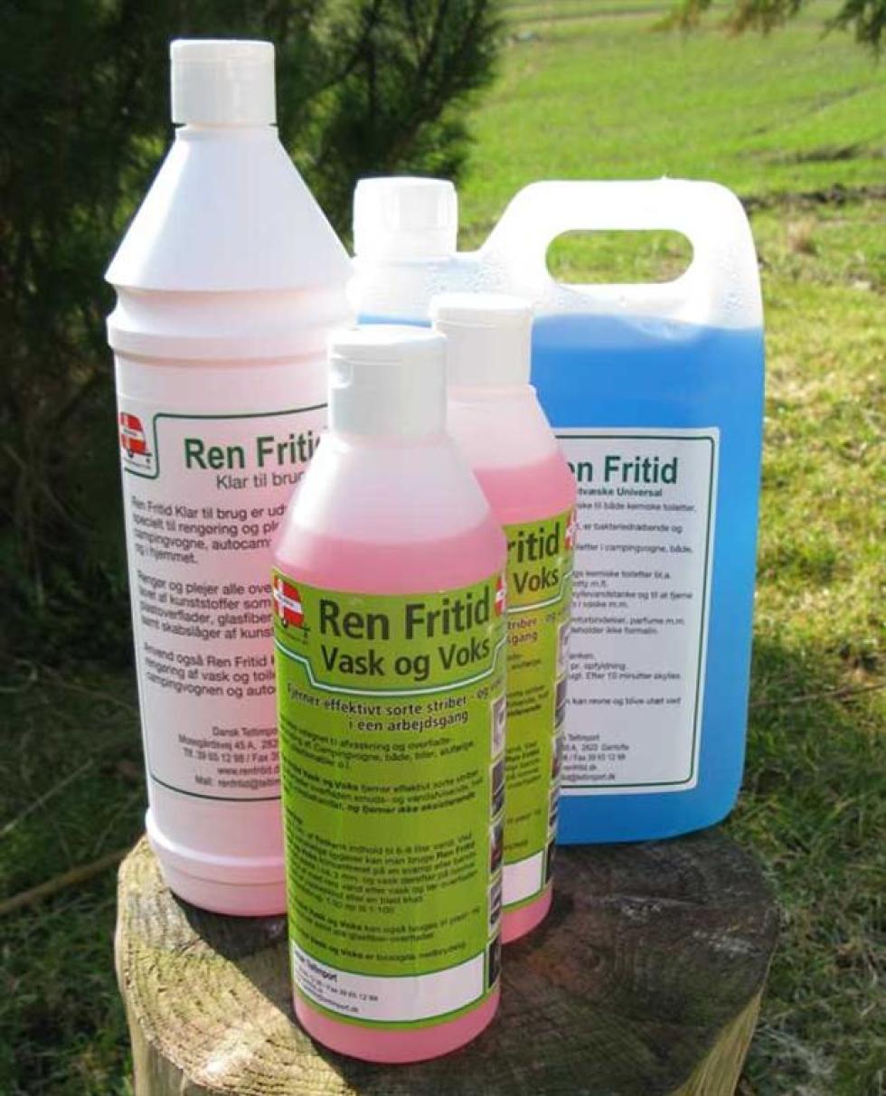 Ren Fritid er utviklet for å rengjøre campingvogner, båter, biler, plastvinduer, hagemøbler i plast, vinylgulv, glassfiber mm. Det har nok en gang fått toppkarakter i en test utført av Dansk Camping Union (DCU).