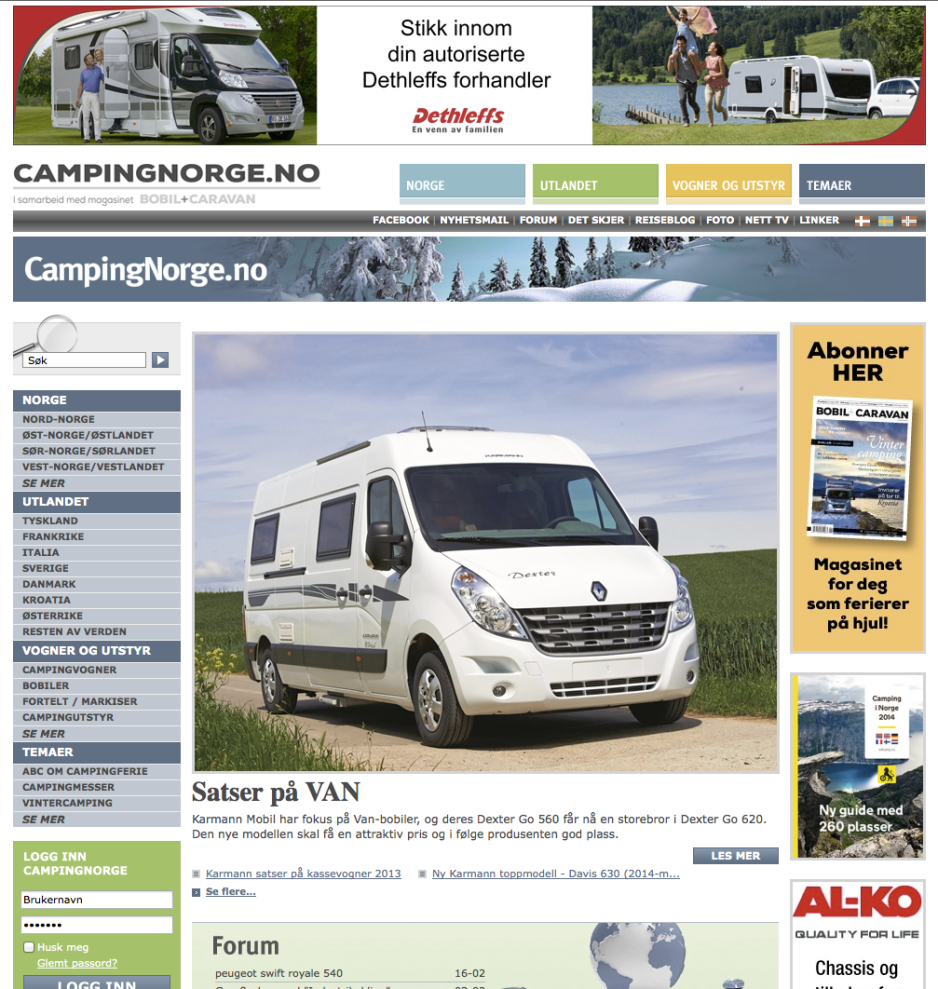Med en annonse på Campingnorge.no blir ditt produkt profilert hele døgnet – også når du har stengt. Portalen har flere tusen besøkende hver uke.