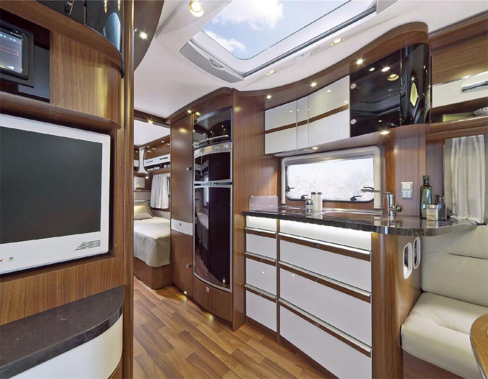 Med brede benkeplater som har granitt- look på overflatene og en kombinasjon av tre kokeplater og en vask samt store full-size skuffer med softclose- mekanisme i hele lengden av kjøkkenet finnes det gode muligheter til å lage mat og ha god plass her. Du føler at du har hjemmets bekvemligheter i dette kjøkkenet, som foruten at det har god plass også er funksjonelt. Hymers mega-kjøkkenskuff (pull-out pantry) er unik for bransjen og utnytter hele høyden i campingvogna. I dagens tidsånd er jo multimedia viktig, og Hymer tilbyr en multimediapakke som ikke står tilbake for noen andre. Her finnes de fleste tekniske innovasjoner du behøver og som transformerer campingvogna til et høyteknologisk kjøretøy. Du får for eksempel flatskjerms-TV som er synlig fra alle retninger og høytalere i alle områder som gir en «wow»-opplevelse. I soverommet har du liggekomfort med et system som har fjærende sengerammer og 7-soners kallskumsmadrasser. Dessuten sengeteppe og fire ekstra puter som gir individuell komfort.Nova-S leveres også med Truma Saphir Comfort klimaanlegg og Alde varmtvannssystem. Med Arctic-pakken med ekstrautstyr blir hele serien også ideell for vintercamping, som jo er svært aktuelt her oppe i Norden.