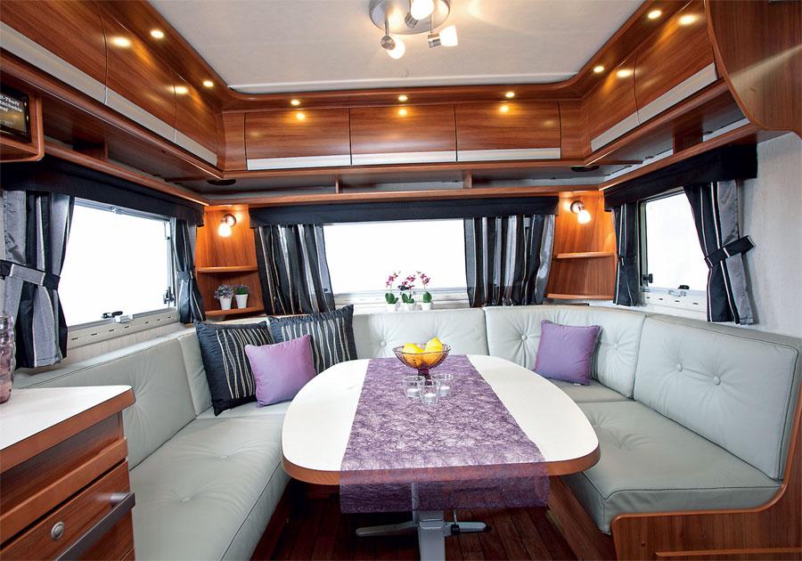 – Vi har jobbet lenge med å finne en innredning som våre kunder spør etter. Nå har vi havnet på en epletre-farge med et ekstra lag lakk som gir en eksklusiv følelse. Det er en noe mørkere variant enn tidligere. Våre vogner har alltid vært nordisk lyse, men det ble litt for kaldt, forklarer Svein Valheim. Badet og dusjen er altså blant de største forandringene innvendig, men også kjøkkenet har fått en del nyheter. Du har for eksempel fire valgmuligheter på veggen bak kjøkkenbenken, dessuten kan sideskapet trekkes ut og gi en større arbeidsflate. Vannkrana står også på benken for å gi bedre plass.– Vi har også markedets beste softclose- system i våre kjøkkenskuffer og overskap, påstår Svein Valheim. Som mener det samme også om sittekomforten og som dessuten skryter av at det luftig og riktig god takhøyde.– De buete toalettdørene gir bedre benplass, og vi har også fått bredere ytterdører. Dessuten er radio- og Cdspiller standardutstyr.Cabby har, i motsetning til for eksempel Rapidos bobil som går fra tre til to kokeplater, gått opp fra tre til fire kokeplater. Gassovnen som er standard finnes i tre varianter.– Vi har 12 nye planløsninger, og i modellene L, F2B og F2C finnes det mer oppbevaringsplass og større plass til bevegelse, sier Valheim videre.– Vognene fra Cabby finnes i seks lengder fra 5,70 meter og oppover, og vi har totalt over 40 planløsninger. Det går å kjøpe panelgardiner som tilvalg istedet for de vanlige gardinene, og man kan velge side for toalettet. LTFstår for toalett på vindussiden, mens LTD står for toalett på dørsiden. Cabby har også øket antallet tekstilvarianter i sine vogner.
