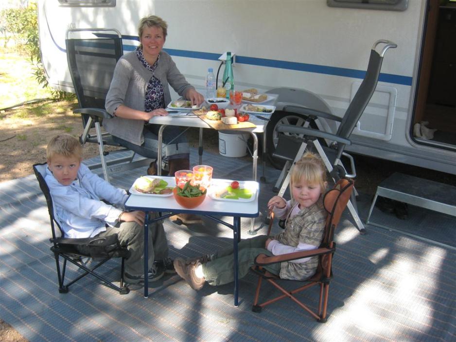 Hjemme på campingplassen leker barna, mens vi tilbereder den lekre maten. Det tar ikke mange minuttene, før vi alle fire sitter og smatter og nyter det som det hele dreier seg om – livet. Vi åpner en flaske god rødvin. Vi skal ikke mer i dag og barna slapper av, ja hele familien slapper av, mens vi nyter smaken av Syd-Frankrike.