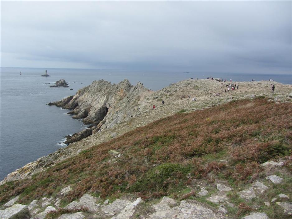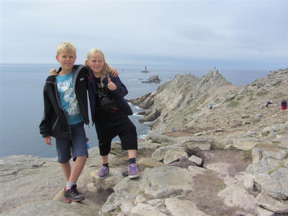 Vi parkerer bilen på den store parkeringsplassen ved Pointe du Raz for å fortsette til fots ut på klippeavsatsen, som markerer Frankrikes vestligste punkt. Det er storslått natur med en praktfull utsikt ut over Atlanterhavet, som i dag viser seg fra sin mer rolige side. Det er et godt stykke å gå, men stien er bred og jevn, så barnevogner og rullestoler også kan komme ut dit. På veien ut ser man også en stor flott statue til minne om de falne under 2. Verdenskrig.