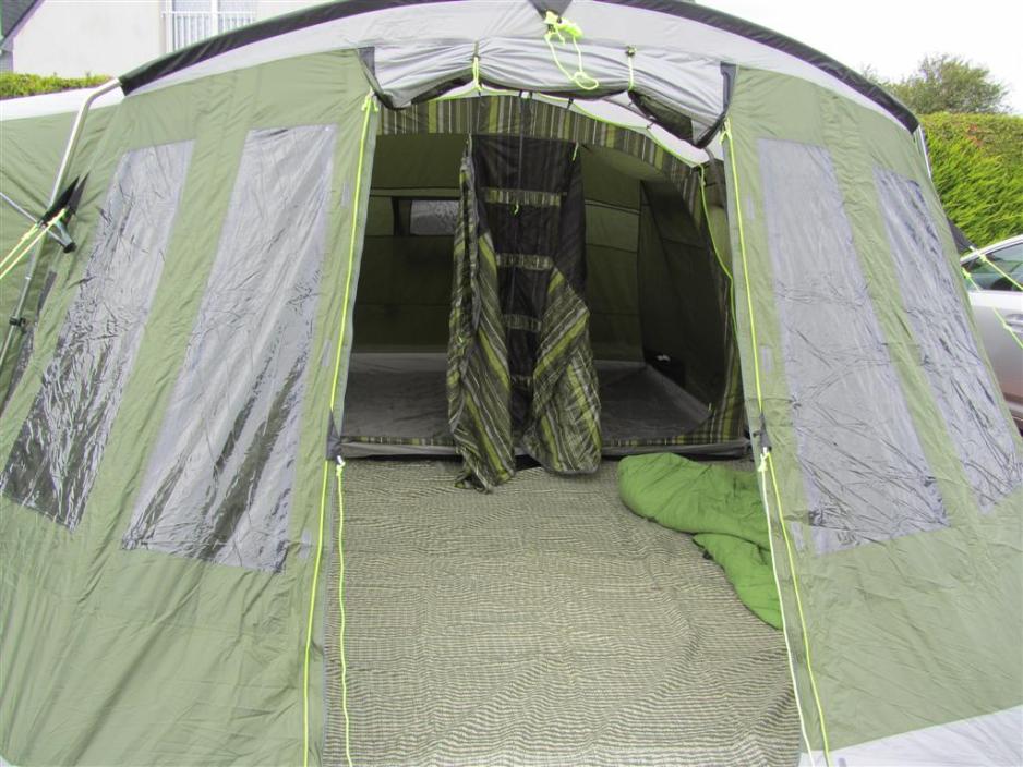 Outwell Ontario L er innredet med to separate sovekabiner og en stor kabin, der man kan spise. Man kan dra ned glidelåsen mellom de to kabinene, hvis man ønsker et stort rom i stedet for to.