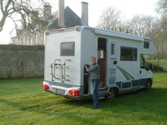 Ja du leser riktig. Mange steder i Frankrike kan man overnatte ved store flotte slott, som har anlagt campingplass i ”bakgården”. Vi kjører litt inn i landet for å overnatte på Camping du Chateau de Martragny, som ligger litt øst for Bayeux. Først kjører man ned en lang allé med høye trær på begge sider. Ikke mange campingplasser har en slik innkjøring. Man bor på begge sider av slottet og bak slottet. Fra mai til september er det oppvarmede bassenget åpent. I kveld skal vi bare sitte og hygge oss foran bobilen. Det er jo heller ikke så værst, hva. På gjensyn i morgen Mathias, Rasmus og Anne-Vibeke