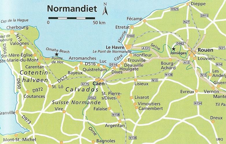 Ved Honfleur: Le Phare 2-stjerners plass vest for byen på vei Deauville. Åpen fra påske til september. Ved Bayeux: Camping du Chateau de Martragny 4 stjerners plass øst for Bayeux på vei RN 13. Åpen fra mai til september. Email: charteau.martragny@wanadoo.fr Ved Le Mont St-Michel: Camping Haliotis Mont Saint Michel 3-stjerners plass i byen Pontorson 9 km syd for Le Mont St-Michel Åpen fra mars til november. på www.camping-haliotis-mont-saint-michel.com Camping Cheques kan benyttes utenom høysesongen (medio juli-medio august). Se også www.campingcheque.com