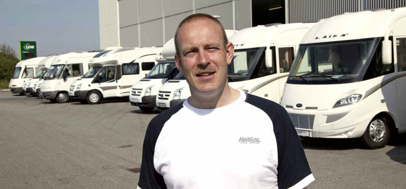 Det var egentlig tilfeldig at vi havnet her, forteller Tor, som tidligere var salgssjef i bilbransjen men ble lei av det. – Min kone og jeg bestemte oss for å ta et sabbatsår, og vi ville reise litt. Derfor skulle jeg til Tyskland for å ta hjem en Ahorn bobil, da jeg hadde gode kontakter der. Men da jeg var der, fikk jeg spørsmål om jeg ville kjøpe flere. Og på den veien begynte det. Tor Alvern stod plutselig med en oppsetning Ahorn bobiler og bestemte sammen med sin kone at de skulle legge 15 timer i uka på dette. Men de behøvde et sted der bilene kunne stå under tak, og dermed havnet de i garasjen til Jærhagen på Klepp. Navnet Abobil kommer fra A for Alvern og Bo for bobil. Tor droppet salg av campingvogner, selv om han har lang fartstid som ”farendes fant” som han selv sier det med campingvogn. Friheten er mye større med bobil, og markedet eksploderer, mener mannen som ikke så snurten av sabbatsåret han hadde planlagt. – Nei, dette ble snart en heltids sysselsetning, og idag har vi fullt i garasjen både med nye og brukte biler. Dessuten har vi utleie, og vi er idag fire ansatte som jobber her, sier eieren av Abobil.