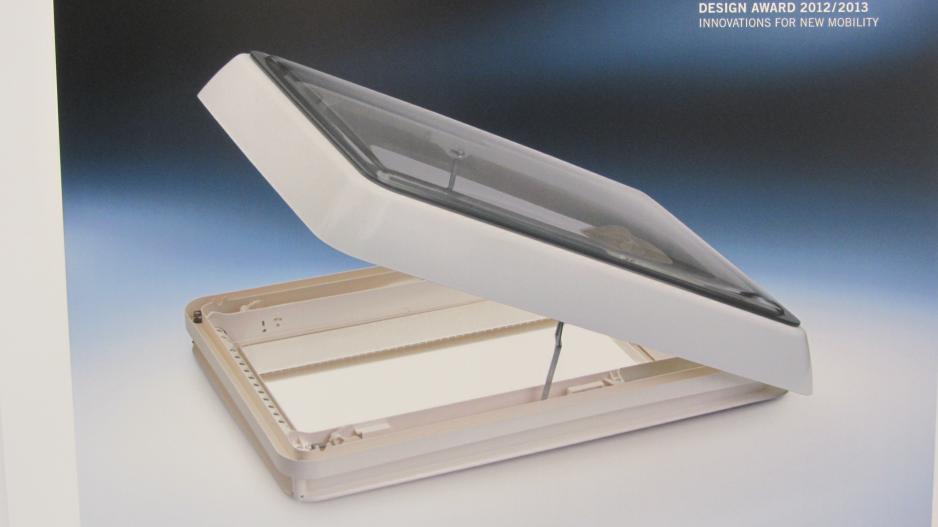 Dometic presenterte i år en lang rekke nyheter som bl.a. nytt toalett, aircondition, lader og takluker. Bl.a. en takluke med målene 400 x 700 mm. Denne modellen har mottatt Caravaning Design Award 2012/13.