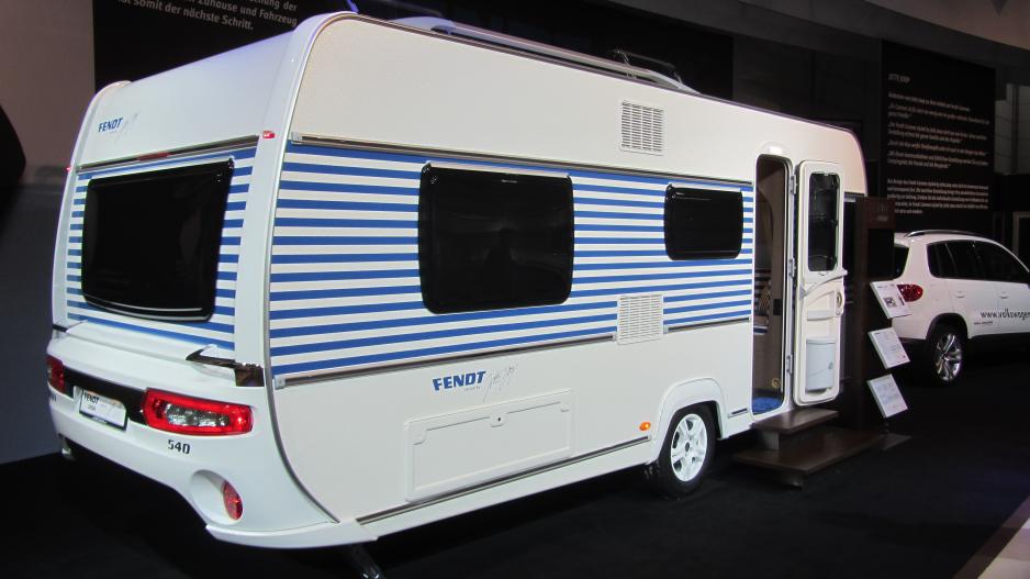 En av de morsommere campingvognene på Caravan Salon Düsseldorf kom fra Fendt, der den tyske designeren Jette Joop har designet en campingvogn, som er blå og hvitstripet. Innvendig er campingvognen også 100 % maritim.