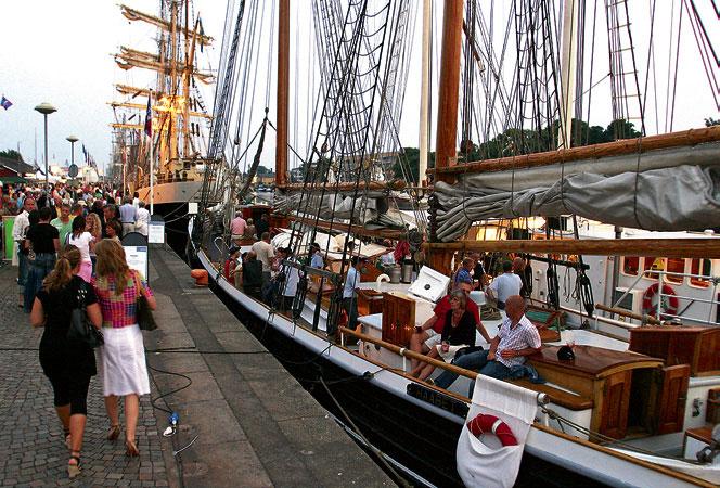 Så er det heller ingen tilfeldighet at så mange stockholmere finner veien til Halmstad i juli måned. Sommerværet i Halland byr på flere og varmere soldager enn landssnittet, og for dem som er vant med å vasse i skummet brakkvann i Østersjøen, vil Kattegats salte bris gi vibrasjonene de lengter etter. Har du spasert rundt i Halmstads stille gater vinterstid, er det nærmest umulig å fatte kontrasten sesongene imellom. Soltørste ferierende inntar byen med brask og bram hver sommer, og med dem følger en feriestemning som legger seg som etslør over området. En tur ned Storgatan, byens sjarmerende gågate, og du finner ferierende svensker som fyller opp hver en uteservering. Her sitter de tilbakelent og nipper i «bärsen» og «kollar läget» før kveldens utflukt på «stan». Årets solbrillemote er stødig plassert på nesa, shortsen henger passelig langt nede på hofta, og sandalene slenger lett på solbrente føtter. Men de unge og lovende stockholmerne får ikke Halmstad helt for seg selv. Med tiden har naboene i vest gitt dem selskap. Danskene smiler fornøyd over den billige «svesetasen» og har en mine som skulle tyde på at det er «dejlig » å være dansk i Sverige, også. Nordmenn, derimot, er det ikke så mange som har sett. – Nei, det finnes ikke så mange av dem her, forteller servitøren på pub’en Harrys, idet hun serverer solide porsjoner kyllingvinger og min tredje Guinness for ettermiddagen. – Danskene har merkbart kortere reisetid hit etter at Øresundsbroen sto ferdig. Men nordmennene, de snur vel i Strømstad, smiler hun tørt.