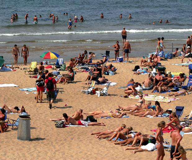 I motsetning til flere av småbyene lenger nord i Bohuslän, er ikke Halmstad noe typisk havneby. Langs gjestebrygga dupper det riktignok noen påkostede lystbåter, men de har ingen skjærgård å cruise i ute i vika, så besøkende flest blir loset til byen via E6. Følger du biltrafikken videre vest fra sentrum, finner du også snart ut hvilken aktivitet som er mest populær: Etter å ha passert en av Sveriges mest eksklusive golfbaner, kommer du til Tylösand; en liten grønn landsby der millionvillaene ligger tett i tett. Alle veier fører til ett sted, nemlig den milelange, buede og kremgule stranden som bærer samme navn som tettstedet. Synet, lyden og lukten av havet, samt av et tusentalls badeglade besøkende, møter meg på toppen av den sivkledde sandvollen. Her ligger de unge og motebevisste fra østkysten og digger sin medbrakte musikk, eller så spilles det sandvolley på flere av de oppsatte banene. Et mangfold av lekende barn og tilbakelente foreldre tyder også på at barnefamiliene nyter tilværelsen på Tylösand. Det langgrunne vannet gjør det både varmt og trygt for de minste.