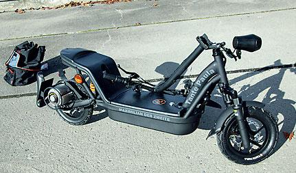 Tenk deg en scooter som du kan felle sammen, pakke inn i vogna eller bobilen (eller en vanlig bil) og dessuten kjøre rundt med uten verken bensin eller diesel. Du lader den enkelt ved å stikke kontakten i et uttak, og en prisen for kjøringen beregnes til 4 øre pr kilometer. Du kan altså ta deg en 10-milstur for 4 kroner.