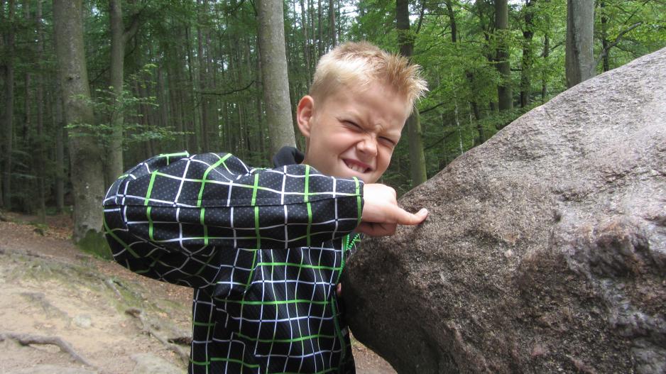 Og når du nu har pakket ryggsekken din og en matpakke, kan du med stor glede fortsette til Rokkestenen – en annen av Bornholms kjennetegn. Rokkestenen er en såkalt vandreblokk fra istiden og dem er det over 150 av i hele Danmark, men Rokkestenen er den mest kjente og du kan få den til å rokke – i hvert fall en liten smule. Det er også en annen historie om, at det er trollet, som har kastet den inn i skogen. Den er selvfølgelig morsommere, hvis du har med små barn.