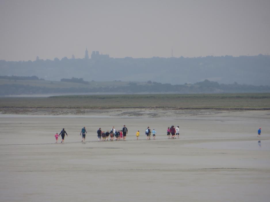 Kanskje er den mest særpregede opplevelsen på Le Mont St. Michel i virkeligheten ikke inne på øya, men ute på havet. Ved lavvann kan man følge med på guidede turer rundt på øya og det er en utrolig fin tur. Du kan også godt gå selv, men pass veldig godt på tidevannet for det kommer raskt og man kan risikere å bli omringet av vann uten at man oppdager det. Det skjer hvert år at turister ikke rekker i land og må hentes på annen måte.