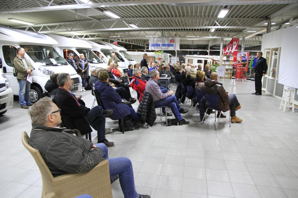 Daglig leder Morten Aleks Myhre åpnet kvelden med å fortelle litt om Stamsaas fritid og hva bedriften står for. Han presenterte de ulike bobiltypene og deres hovedfordeler for rundt 40 interesserte som hadde møtt frem i høstmørket.Wright trafikkskole orientere så om hva som kreves og hva det innebærer å ta C-førerkortet.– Dette er ikke vanskelig, 80 prosent klarer det, men vær klar over at det tar rundt tre måneder sa Cato Rød fra trafikkskolen.Gjensidige var også representert og presenterte sin bobilforsikring.En av de oppmøtte savnet auksjonene som Stamsaas hadde tidligere. Dermed improviserte daglig leder Morten Aleks Myhre en spontan budrunde på en Sailer bobil som stod i umiddelbar nærhet.