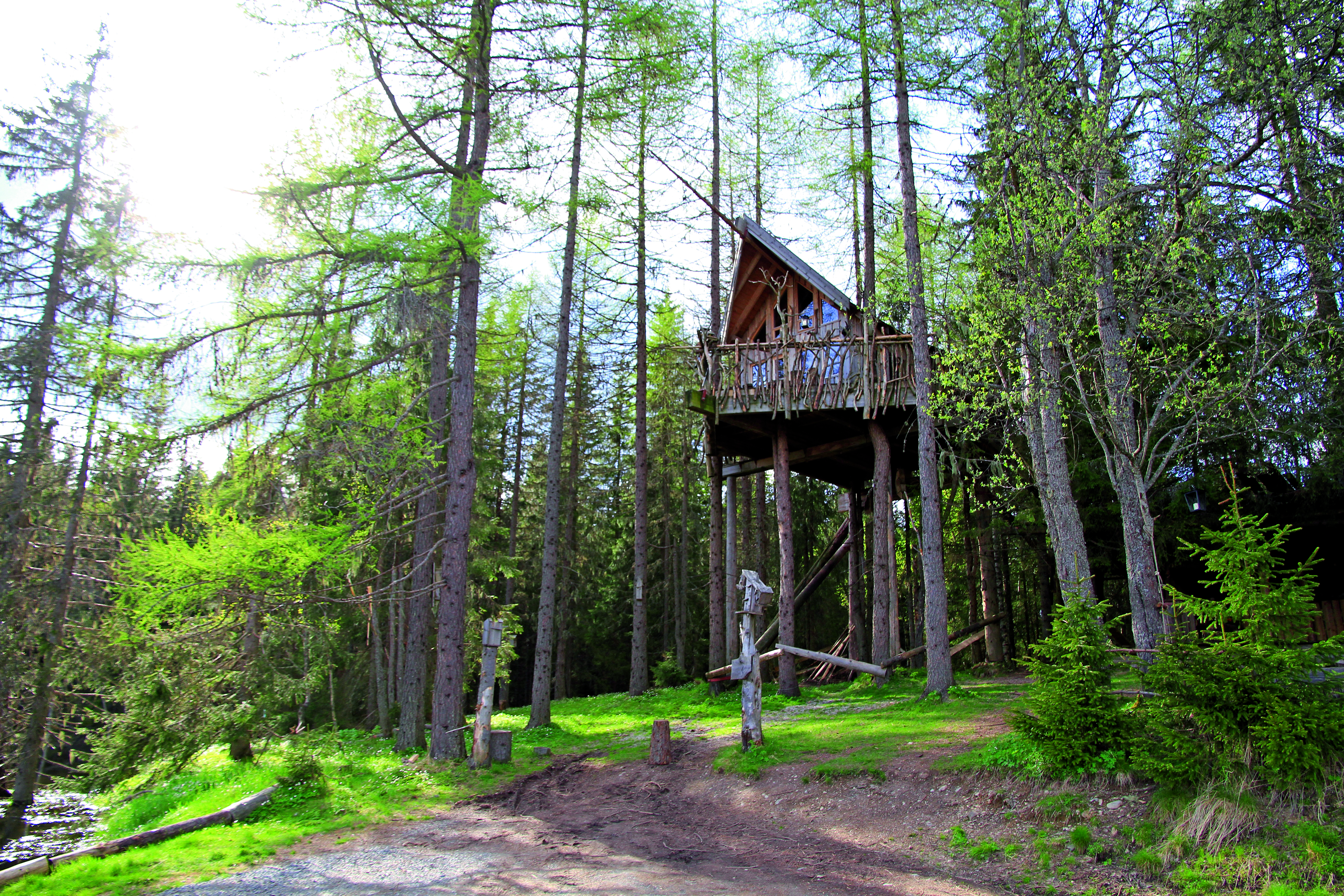 Har du lyst på en opplevelse utenom det vanlige har tretopphytter noe uvanlig å tilby deg. Og det er en så annerledes opplevelse at du garantert ikke vil angre om du dropper bobilen eller campingvogna for en natt.Jeg er på vei til Lerkehytta og kjører på en liten skogsbilvei med en stor bobil, og lurer på om jeg har gjort noe dumt. Det er mye vann flere steder i veien, og jeg er spent på om det finnes en stor nok snuplass ved enden av veien - som ikke kan være langt unna skal jeg tolke veibredden…Jeg er ikke i tvil om at jeg er fremme, for en så stor hytte i et tre finnes det ikke maken til. Jeg har kommet til Lerkehytta som har fått navnet sitt etter trærne omkring. Ingen av de fire hyttene til Tretopphytter ligner på hverandre. Langt fra hverandre ligger de også, vi snakker om minimum fem kilometer. Felles for de alle er en unik naturopplevelse innimellom trekronene, langt fra folk.Veien opp til tretoppene går på solide trapper, snekret med grove og solide materialer. Selve hytta er festet i flere trær og er støttet med solide tømmerstokker på alle sider. Det hele oppleves som veldig solid og trygt.Vel oppe i Lerkehytta er det fuglelivet, utsikten og ekornene som du først legger merke til. Jeg hvisker uten å tenke over det. Det må være på grunn av den nærmest totale mangelen på støy. Her er det stillheten som råder, og når jeg ser utover terrassen, føles det som om jeg har naturen for mine føtter.