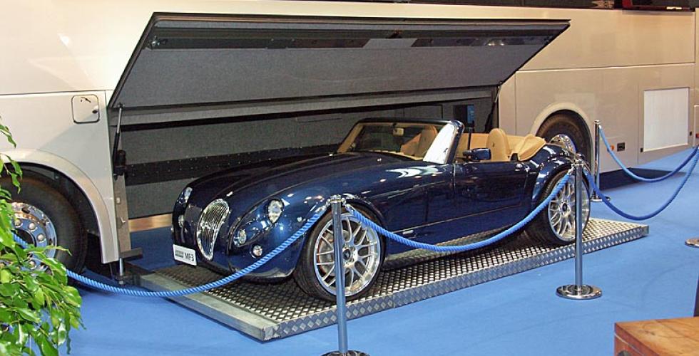 Trenger du hjelp til å holde garasjen ryddig og oversiktlig? Hymer lanserer nå et bagasjesystem utviklet ekslusivt for produsenten. Kjernen i systemet er store plater og kurver som kan skyves ut av garasjen på skinner. Dermed er det slutt på å klatre inn i en trang garasje for å få tak i det første du pakket på turen.