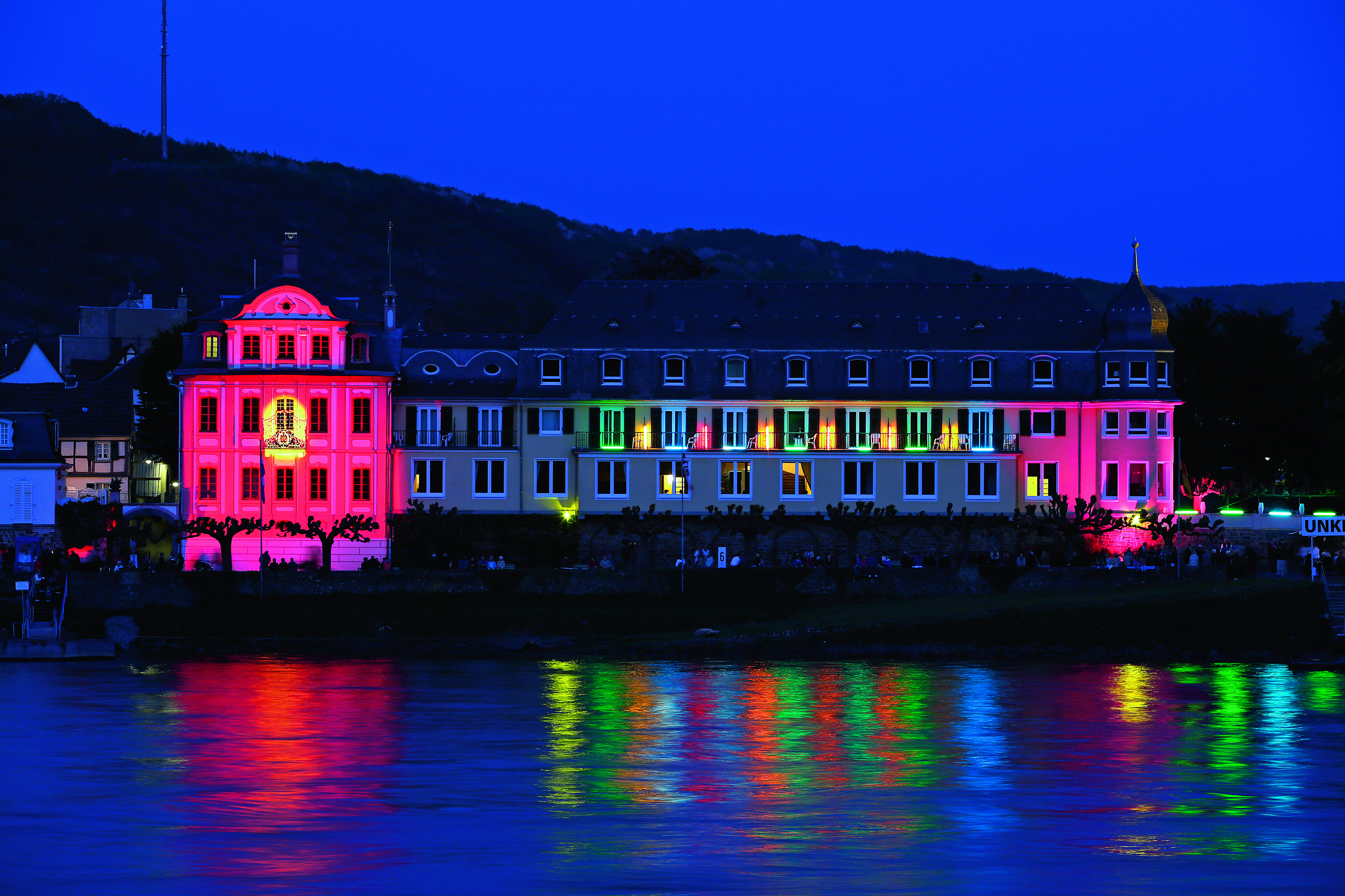 Den beste måten å oppleve skuet på er fra båt. Stemningsfullt opplyste båter kjører nærmest i konvoi, og du kan nyte en bedre middag om bord mens du venter på at båten skal bringe deg til en god posisjon på elven. Det største av de fem arrangementene er i Koblenz i august, mens det er Bonn som starter sesongen i mai. Årets siste mulighet til å oppleve Rhinen i flammer er i St. Goar og St. Goarshausen den 21. september. Tar du båt, havner du sannsynligvis mellom slottene Burg Maus og Burg Rheinfels som en ekstra bonus.