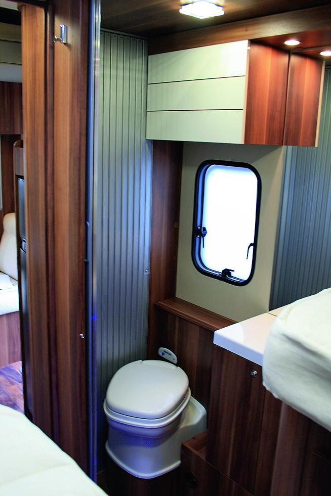 Sittegruppen består av en dinette med hjørnesofa og svingbare førerstoler, persienner, skinndetaljer og dreibart bord. Stort panoramavindu i taket og LED belysning under senkesengen. Skapene som er festet under senkesengen har nå fått avrundet kant på den ene siden for å unngå skarpe hjørner.Roller Team 284 TL Limited Edition har gulv som er hele 75 mm tykt og produsenten gir seks års garanti mot lekkasjer. Yttervegger og tak er laget i plastbelagt glassfiber som tåler hagl-byger. Den store garasjen som måler 1150 x 820mm gir mulighet for å ta med deg scooter eller sykler og mye bagasje. Det er dører på hver side og gode festemuligheter, men vi savnet lys i garasjen.