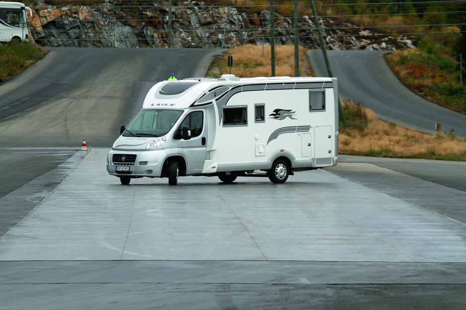 – Hvilke forventninger hadde du til glattkjøring med bobil? – Jeg visste ikke hva dette gikk ut på, og det hørtes egentlig skummelt ut. Men denne dagen på NAF-banen foregikk under så trygge rammer at det ikke var farlig overhodet. – Den første øvelsen var å bli kjent med underlaget og gjøre en nedbremsing på rett vei, hvordan gikk det? – Det var nesten urealistisk glatt på banen. Men etter noen runder lærte jeg meg fort hvilken hastighet som var riktig for å beholde kontrollen. Under bremseprøven opplevde jeg forskjell på effektiviteten. Da jeg ga maksimal bremsekraft var ikke oppbremsingen like effektiv. Det var ikke som forventet, da ABS-systemet normalt skal sikre optimal oppbremsing når tråkker pedalen i bunn. – Neste øvelse var oppbremsing med unnamanøver, hvordan gikk det? – Her opplevde jeg rett og slett at jeg mistet styring på bobilen når jeg hadde maksimalt trykk på bremsepedalen. ABS-systemet gjorde ikke jobben sin og hjulene låste seg. Jeg prøvde flere ganger, og ved å bruke mindre bremsekraft kunne jeg fremdeles høre hvordan ABS-systemet jobbet med å forhindre at forhjulene låste seg, og da hadde jeg grei styring. Jeg har lang erfaring med kjøretøy uten elektroniske hjelpemidler, og er godt vant til å redusere trykket på bremsen om jeg mister styringen. Derfor er det viktigst at jeg er klar over hvordan min bil fungerer. Uansett skal jeg få sjekket opp ABS-systemet, det er et viktig hjelpemiddel.