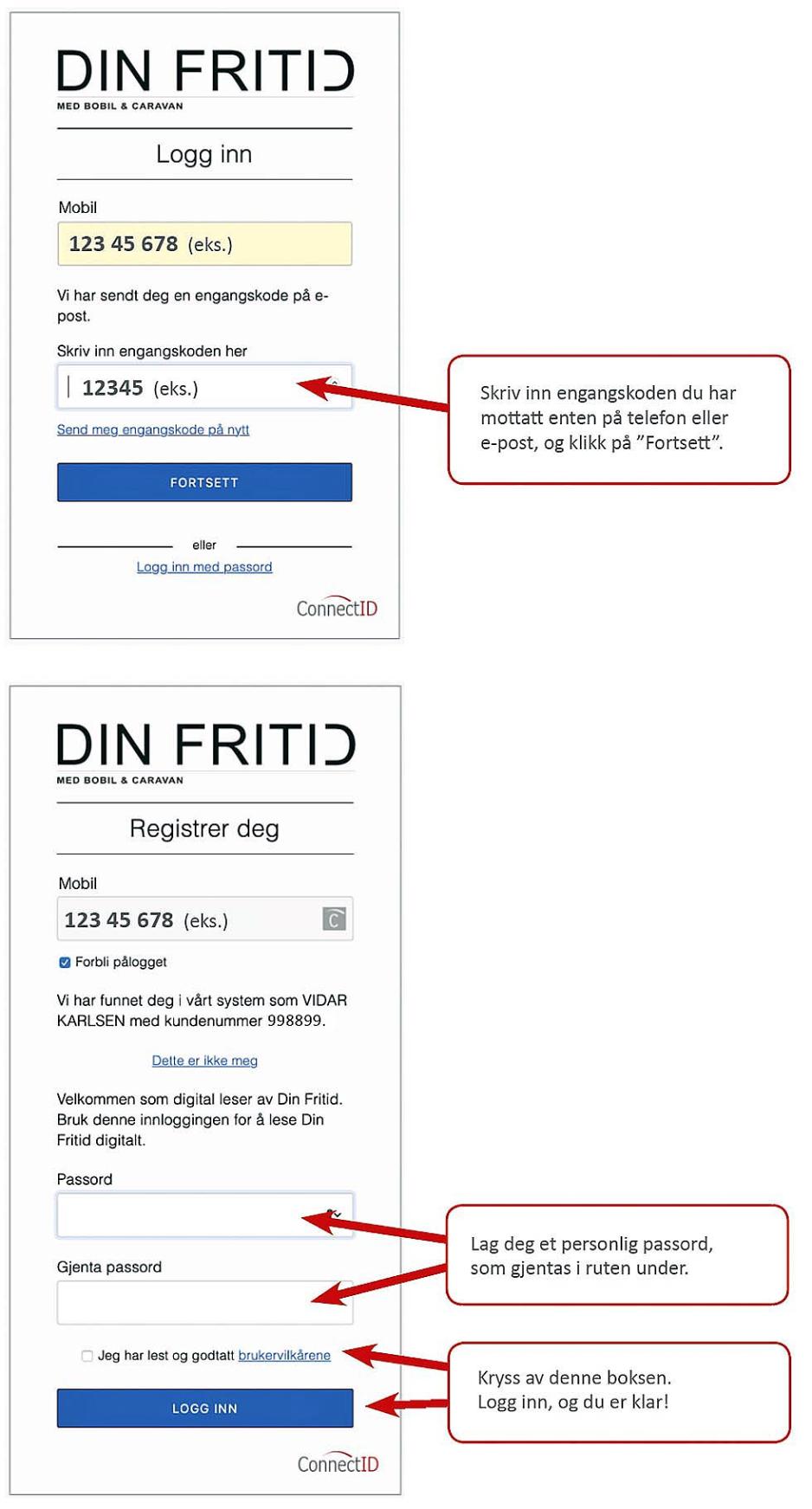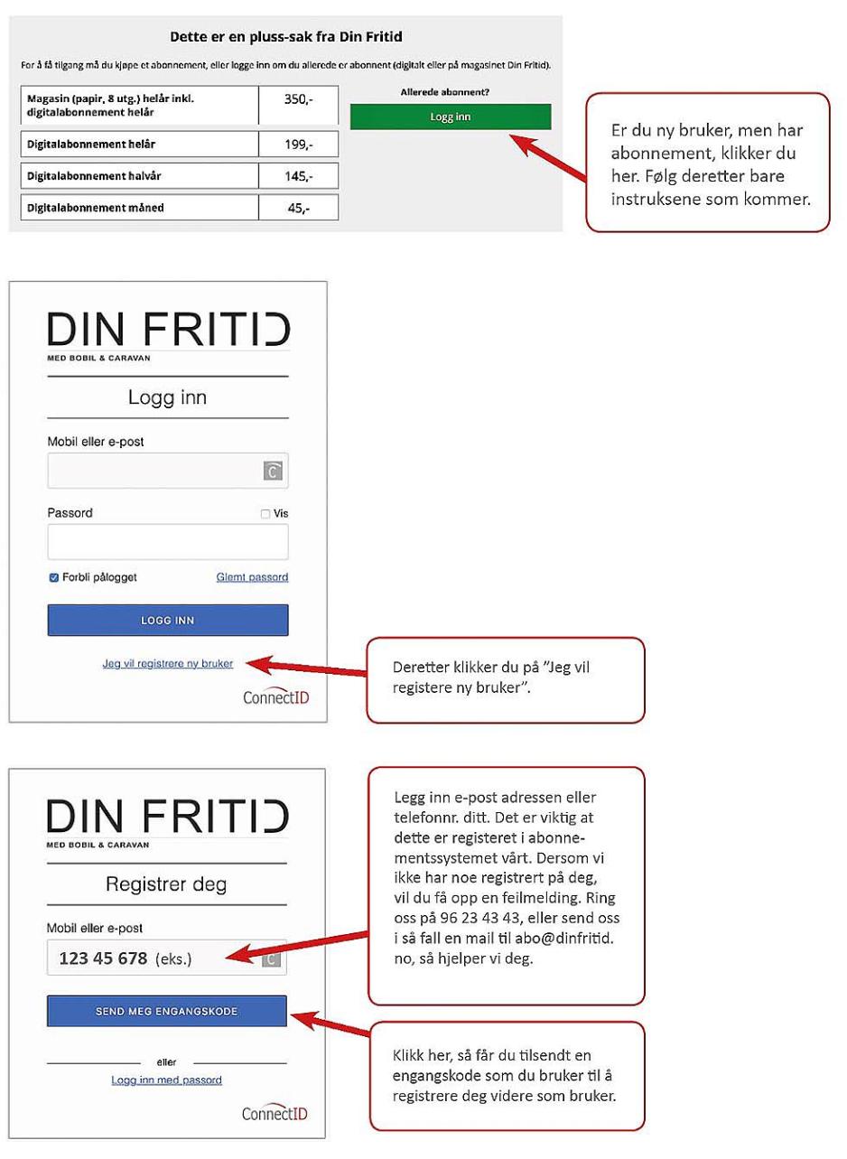 Om ikke vil du få opp en feilmelding på dette, og da kan du ringe vår kundeservice på 96 23 43 43 eller sende en e-post med informasjonen til abo@dinfritid.no - så hjelper vi deg!