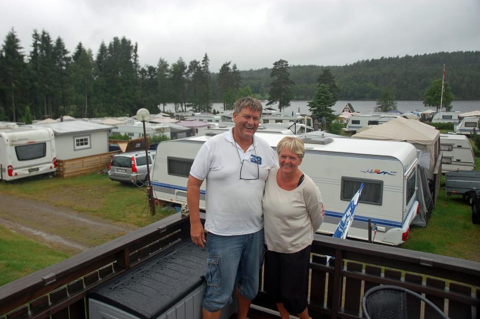 – Nå har vi hatt fast plass her i 20 år. De første årene stod vi midt nede på plassen, men nå kan vi nyte roen og utsikten over hele campingområdet fra plassen vår i den øverste rekka, smiler ekteparet fra Sarpsborg.