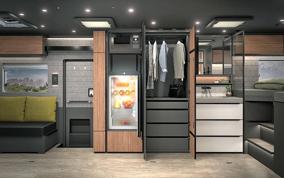 Et annet høydepunkt er Smart Caravaning Unit. Bobilens innehaver kan overvåke og styre elektronikken i kjøretøyet med smarttelefonappen, uansett plassering.