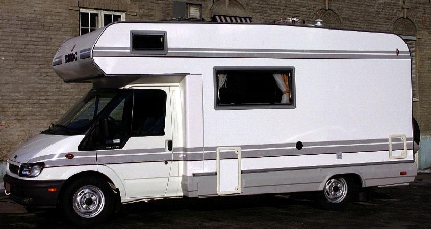 Four Seasons er av de rimeligste modellene til Nordic. Men det betyr ikke at den er billig. Utstyrsmessig ligger den heller ikke tilbake for de andre modellene. Utvendig er de designmessig like og stort sett snakker vi bare om alkovemodeller. Påbyggets form er litt gammelmodig, konvensjonelt oppbygd med kantlister i aluminium. Fargen er kremgul med grå striper. Jeg savner hvite flater og litt morsom dekor. Men dette er kun en smaksak. Ser du nøyere etter har veggene umiskjennelig glassfiberstruktur. Det liker jeg. På høyre side finner vi vindu til soverommet bak, et lite kjøkkenvindu og luke til bagasjerommet under sengen. På venstre side er det et stort vindu ved sittegruppen og et lite oppe i alkoven, dessuten gasskassen for 2 x 11 kg gass. På baksiden er det et vindu og dessuten er reservehjulet plassert her. På undersiden av bilen er påbyggets gulv lagt på trelister som igjen ligger på bilens originale chassis. |Ledninger og gassrør er ført gjennom disse listene. Bak bakakselen, under gulvet og i full bredde er det plassert en glassfiberkasse for bagasje. Luken er støtfangeren bak bilen. Dermed tåler denne ikke store smellen men det gjør heller ikke mange andre bobiler hvor støtfangerne bak er laget av tynn plast. Noen rørnedstikk forvirret meg litt, men det viste seg å være nedløp fra to spillvannstanker pluss direkte avløp fra dusjen.