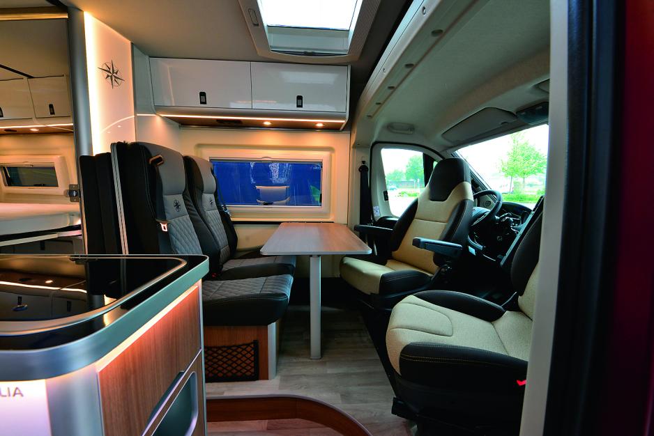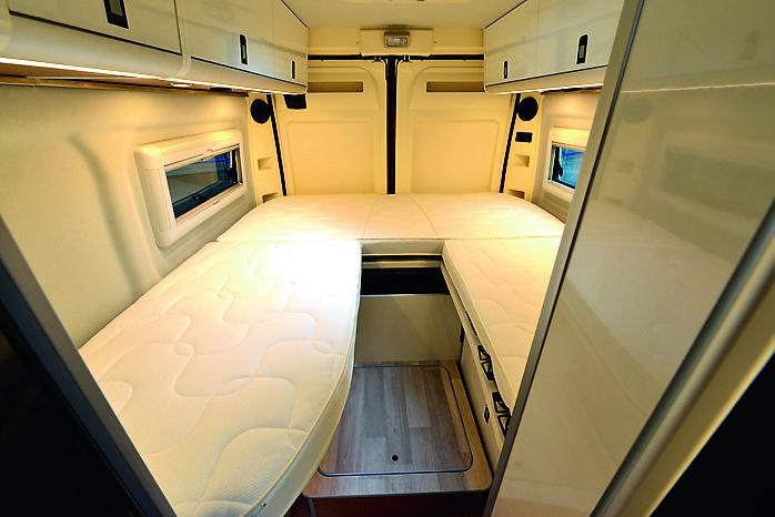 Colombus heter den mer eksklusive modellen basert på Fiat. Planløsningene er de vanlige, tverrstilt seng bak eller langsgående senger. Foruten en del smarte finesser og en generelt god finish, er det varmesystemet som tiltrekker seg vår oppmerksomhet. Bilen har vannbåren varme, ikke fra Alde, men fra Eberspächer. Samme varmesystem som vi normalt finner i motorrommet på transportbiler har Westfalia plassert under kassebilen. Inne i bilen er det plassert konvektorer som sprer varmen, og vannbåren gulvvarme kan fås som tilbehør. Vår erfaring er at denne varmeren krever mye strøm, og vi spør derfor Westfalia hvordan de har løst utfordringen rundt strømforsyning: – Standard er doble forbruksbatterier og et 100W solpanel. Vi har testet fricamping i tre døgn i minusgrader og det ga ingen problemer. Men skal man bruke bilen vinterstid anbefaler vi vår vinterpakke med ekstra isloering i bakdørene og i skyvedøren, forteller Westfalia.