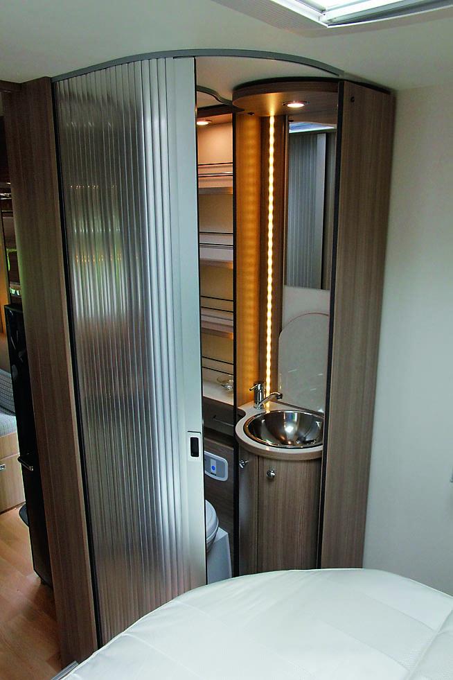En spennende modell for det norske markedet er 650FF, som i følge produsenten er markedets minste med senkeseng og frittstående dobbeltseng. Strengt tatt er dette en fransk sengeløsning hvor bad og seng er bakerst i bilen. Men det er riktig som Rapido sier; det er mulig å få adkomst til sengen fra begge sider. Uansett er dette en interessant modell på 6,69 meter og takhøyde under senkesengen på 1,88 meter. Har du mulighet for å velge en noe lengre bil kan 6,99-modellen 680FF også by på frittstående seng. I tillegg har modellen en helt ny løsning for badet, hvor du har to skyvedører og den innerste dekker doen og gir mer gulvflate. Samme løsning for badet har også 850F.