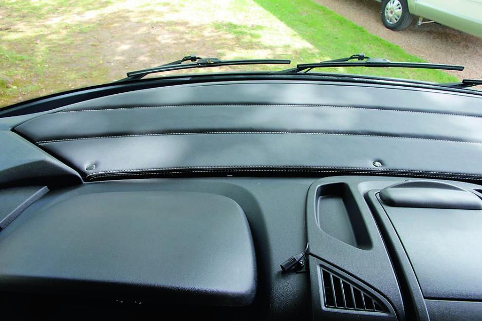 Her ser du detalj fra det elegante lærkledde dashbordet på Distinction. Foto: Tore Afdal