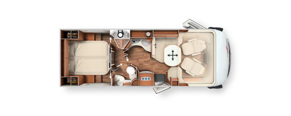Ny interiørløsning på Chic c-line I 5.0 med Carthagos såkalte ”soveromssuite”.