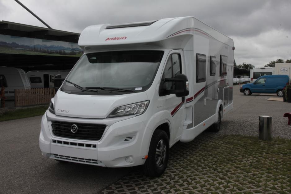 I vinter ble den integrerte versjonen av Trend lansert. Men det betyr ikke at utviklingen av serien er komplett. Nå supplerer Dethleffs serien med to nye interiørløsninger: 6767 og 7017. Begge løsningene leveres både som halvintegrert (T) og integrert (I), så i praksis snakker vi om fire nye Trend-modeller. Den førstnevnte har en utradisjonell interiørløsning, en enormt stor sittegruppe og et unikt lagringsrom på over 230 cm høyde. Noe for deg med surfebrett og mange gjester? 7017 har en løsning som er spesielt populær i Skandinavia: Lave enkeltsenger med tverrstilt bad bakerst. Dette interiøret gir tradisjonelt lite garasjeplass, det gjelder også løsningen til 7017, selv om den ikke er verst i klassen.